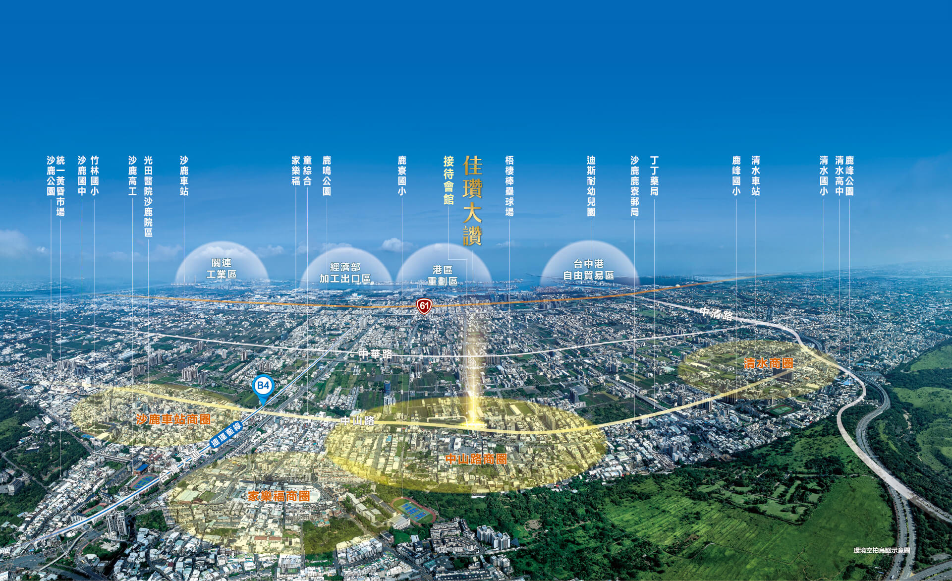 沙鹿,位處雙產業廊道中央黃金樞紐地段,匯聚國際建設願景、交通便利優勢與價值潛力齊步到位。