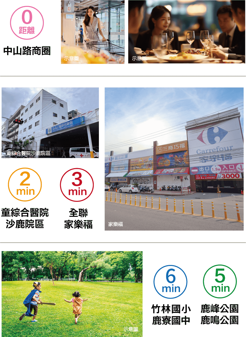 下樓幾分鐘,就是孩子的校園與綠地公園, 家的採買與餐桌美味,醫療機能完善,日常照護更安心;假日還能輕鬆到三井outlet,生活娛樂咫尺之遙。「佳瓚大讚」將全方位的生活所需,通通安放在家門口的生活圈裡。
