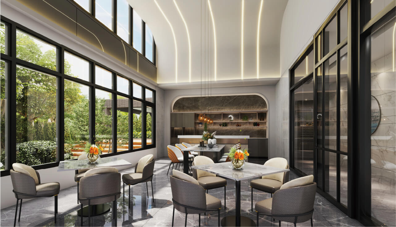 「佳瓚大讚」以綠廊前庭的路徑,引領回家的儀式感。走入門廳後,一座開放式大廳與接待交誼廳座落於中軸,延伸生活的交流溫度;社區內公設配置多功能教室、健身房等實用空間,讓生活有更多的休閒感和鄰里互動。外圍環繞曲折園徑與木平台,構築藏於市中心的靜謐綠洲,稍稍地洗滌外界的喧囂。