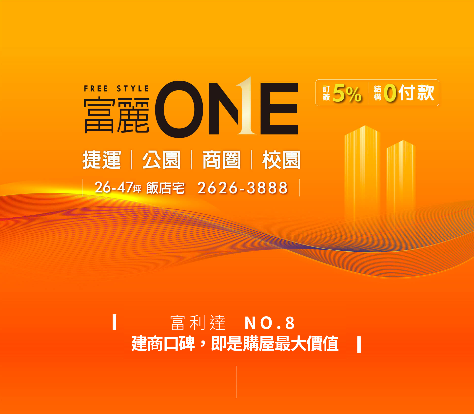 生活。洞悉區域發展趨勢、鷹眼獵地,創造地段與建築價值。新市鎮八期「富麗ONE」,經典再續!口碑再續!