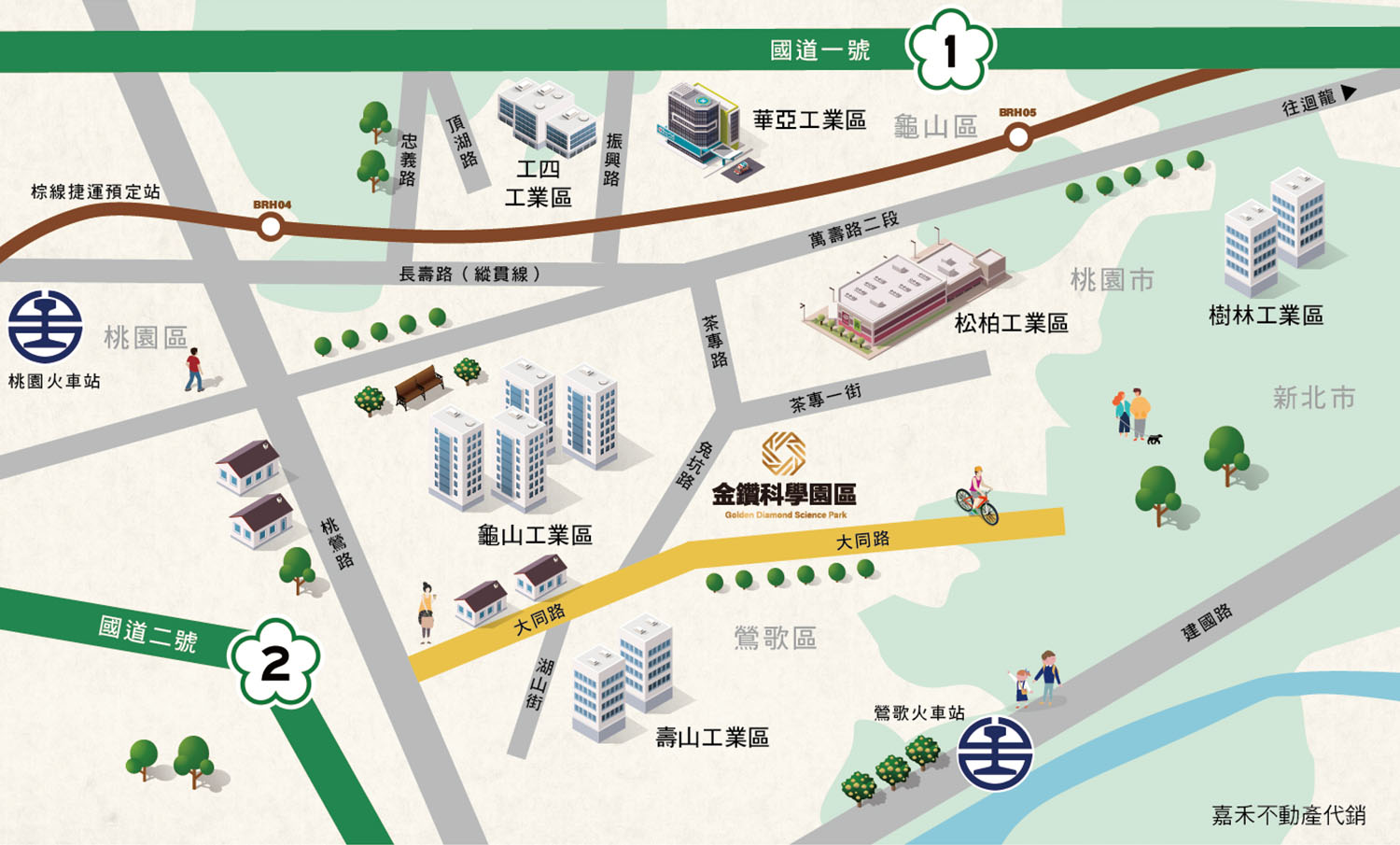 金鑽科學園區周邊擁有多家知名科技大廠,包括華亞科技園區、研華科技、凌華科技、華碩電腦、廣達電腦、仁寶電腦等,這些企業在電子製造、資訊科技等領域具有領先地位,此區域的科技產業園區和工業區設施完善,吸引了眾多國內外企業進駐,形成了完整的產業鏈,促進了台灣科技產業的發展。